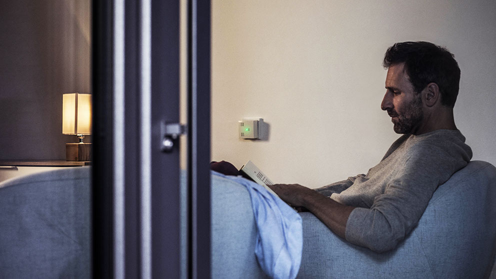 Entegre pencere açma kontakları, bir pencerenin açık, eğik* veya kapalı olup olmadığını algılar. Akıllı Ev sistemine entegre edildiğinde, tüm Smart Guard pencerelerinin durumu, bir uygulama kullanarak her zaman ve her yerden rahatça izlenebilir.